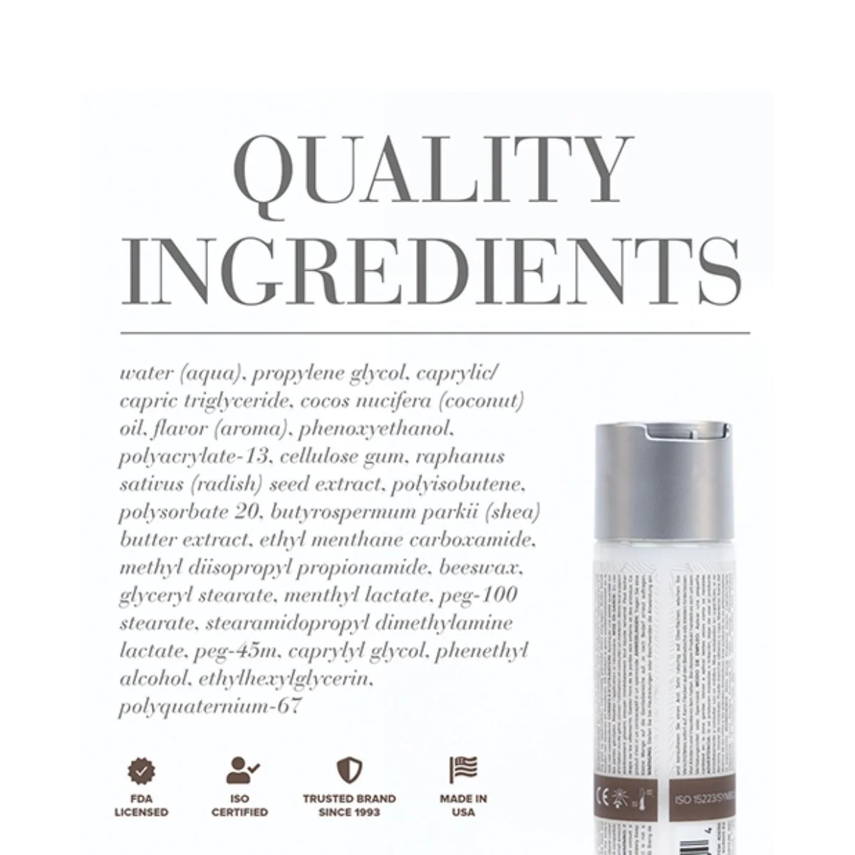 De romige, zijdezachte textuur biedt langdurige glij-eigenschappen en laat de huid gevoed en gehydrateerd achter, zonder vettig of plakkerig gevoel. Ideaal voor solo-, partner- of toygebruik. Dankzij de natuurlijke samenstelling met Cocos Nucifera (kokosolie) werkt dit glijmiddel ook verzorgend en kalmerend op de huid.
