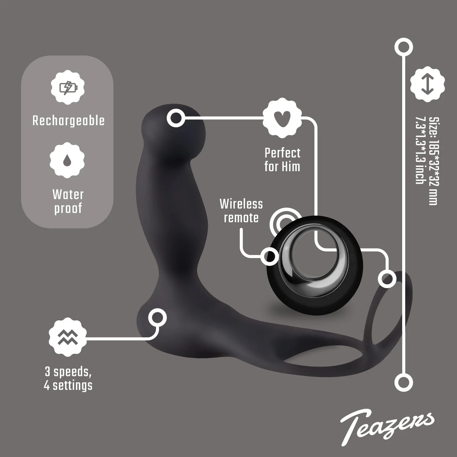 Productinformatie "Teazers Cock And Ball Ring Prostate Vibrator Met Afstandsbediening"