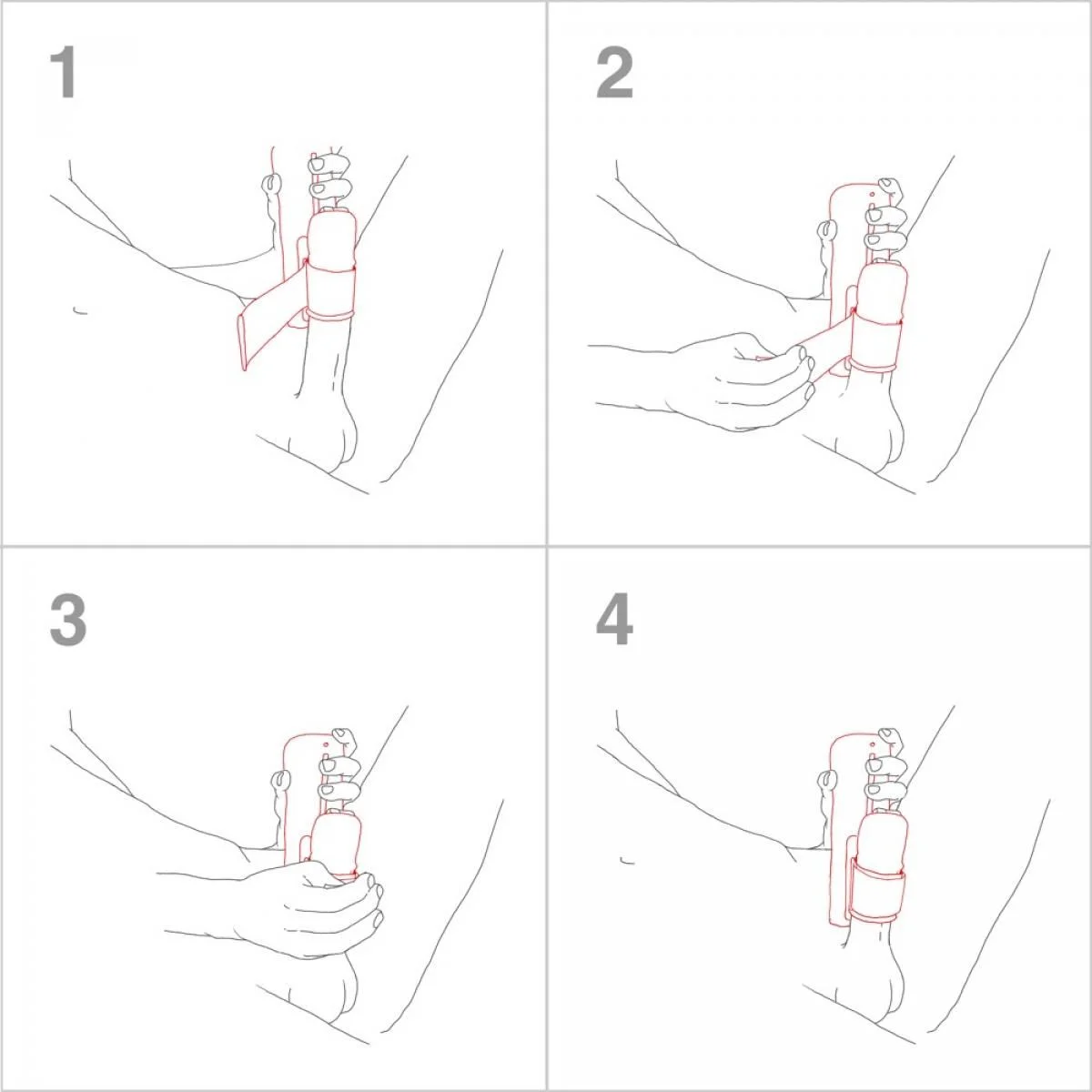 Het is voorzien van een genopte sleeve die met de TrueGrip-band aan de masturbator kan worden bevestigd. De diameter
