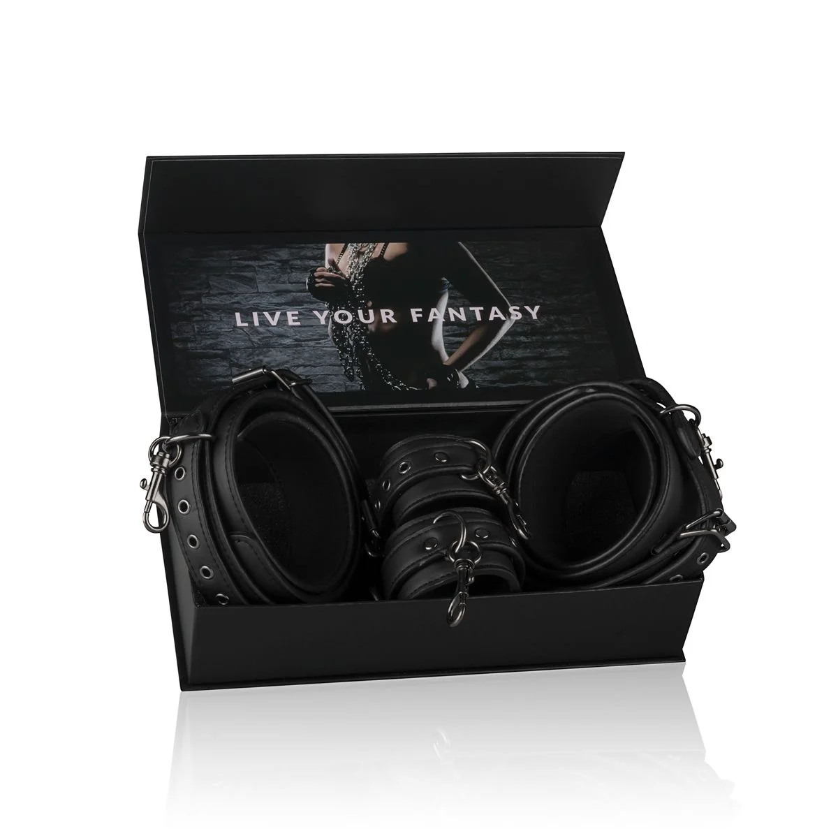 Deze hoogwaardige boeien zijn vervaardigd uit sterk en duurzaam kunstleer dat niet alleen prettig aanvoelt, maar ook lang meegaat. Voor extra comfort zijn ze aan de binnenkant gevoerd met zacht schuimrubber, wat irritaties en schrammen voorkomt. De slimme clipsluitingen maken het mogelijk de pols- en dijbeenboeien eenvoudig aan of los te koppelen. Hierdoor kun je de boeien los dragen of combineren met andere BDSM accessoires, zodat je jouw bondage-ervaring helemaal naar wens kunt afstemmen. Het verstelbare ontwerp garandeert een perfecte pasvorm, met polsboeien die verstelbaar zijn van 11 tot 28 cm en dijbeenboeien van 42 tot 87 cm.