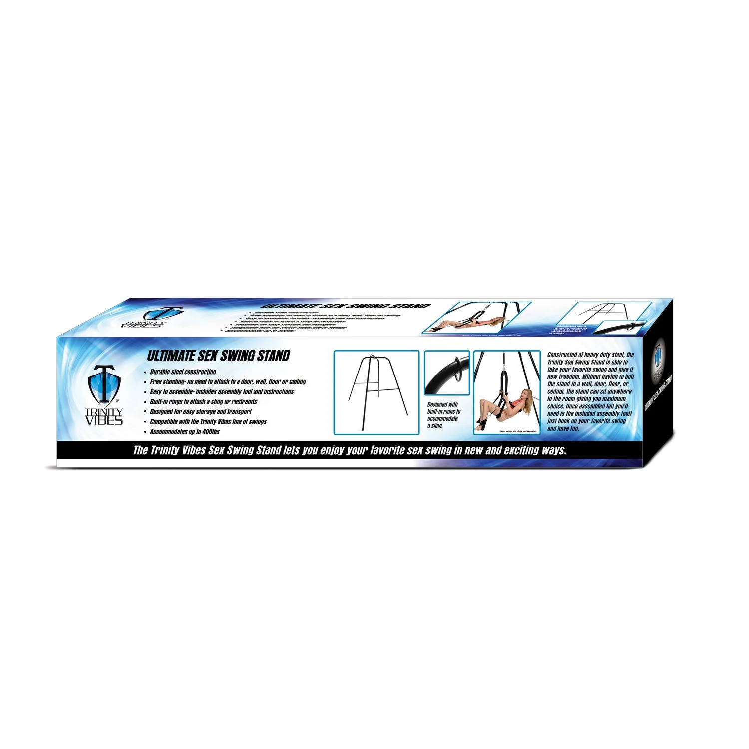 Met de TRINITY VIBES Ultimate Sex Swing Stand haal je een veelzijdig en betrouwbaar frame in huis dat je seksuele beleving naar een hoger niveau tilt. De combinatie van stevigheid en flexibiliteit maakt dit product tot een must-have voor koppels die hun intimiteit graag fysiek verkennen met maximale bewegingsvrijheid.