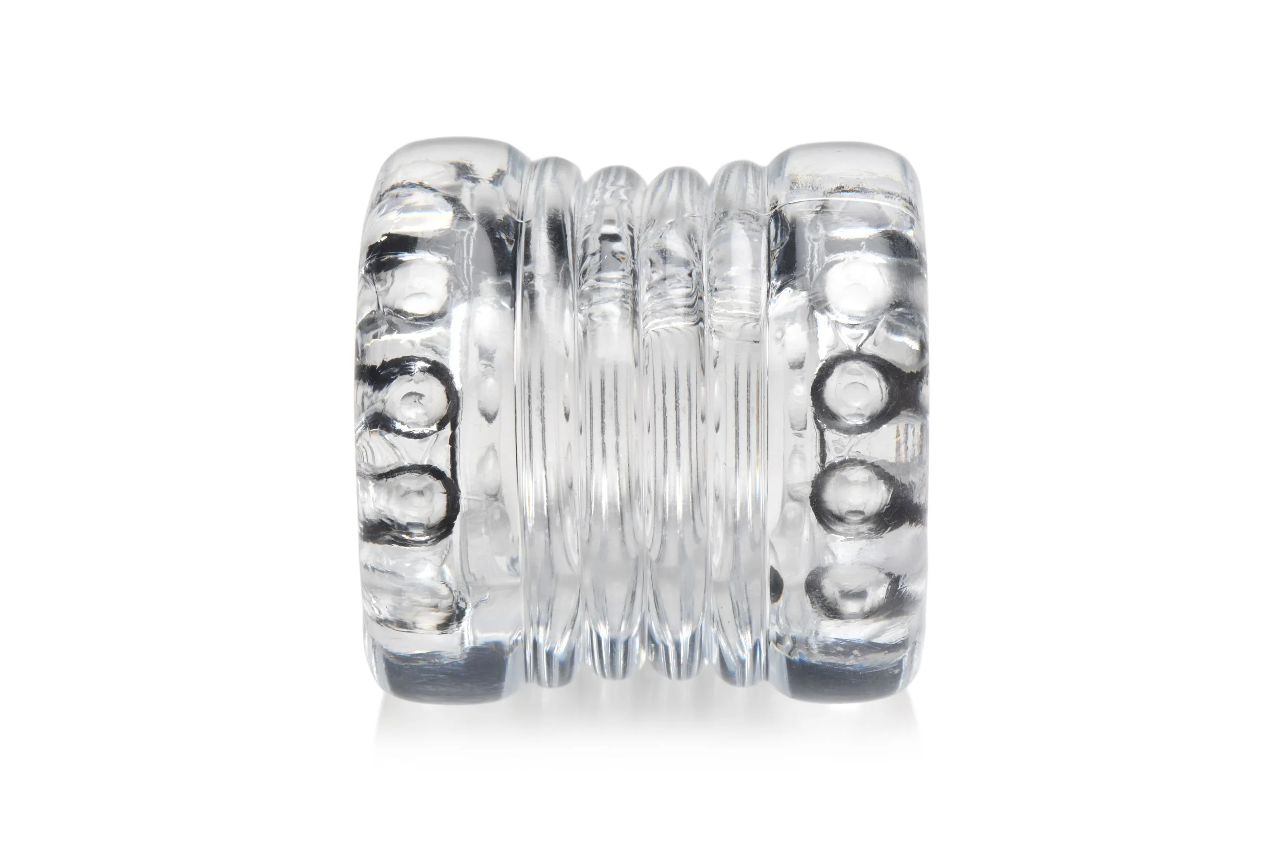 Het transparante design van deze ballenstretcher zorgt ervoor dat hij bijna onzichtbaar is tijdens het dragen, terwijl de flexibiliteit garant staat voor langdurig draagcomfort, ook wanneer je van houding wisselt. Wat dit model onderscheidt, zijn de rijen getextureerde knobbels aan beide uiteinden van de tunnel. Deze unieke textuur bevordert extra stimulatie van het scrotum en verhoogt de grip, waardoor elke beweging intenser aanvoelt en bijdraagt aan een nog plezierigere ervaring.