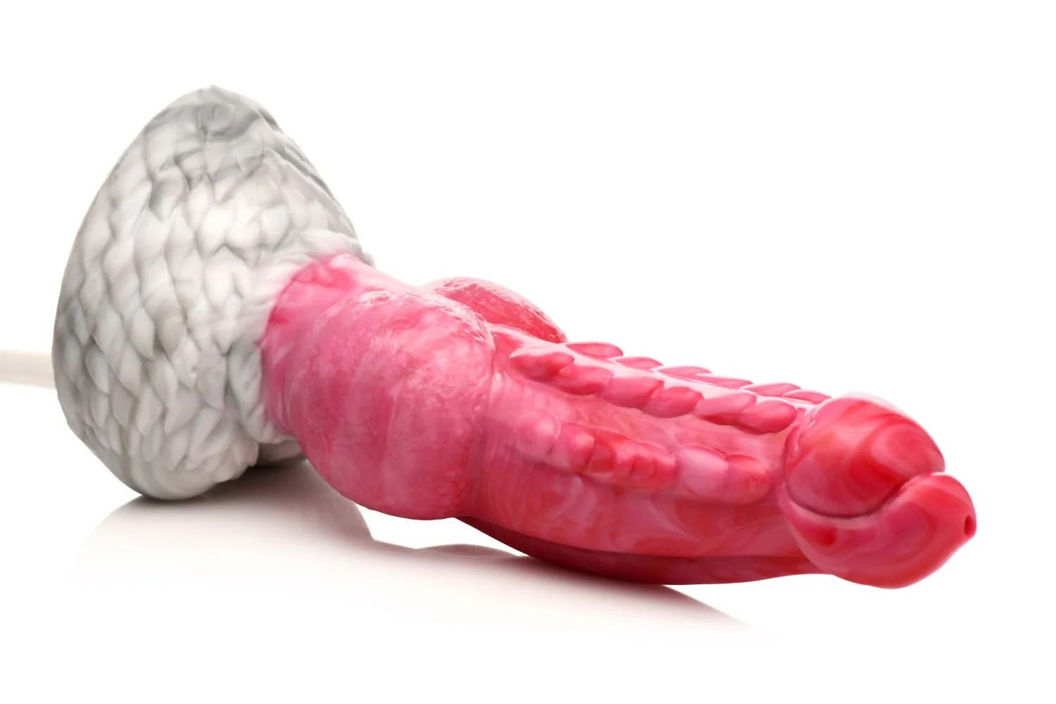 Productinformatie "XR Brands - Resurrector Phoenix Spuitende Siliconen Dildo - Rood/Wit"
