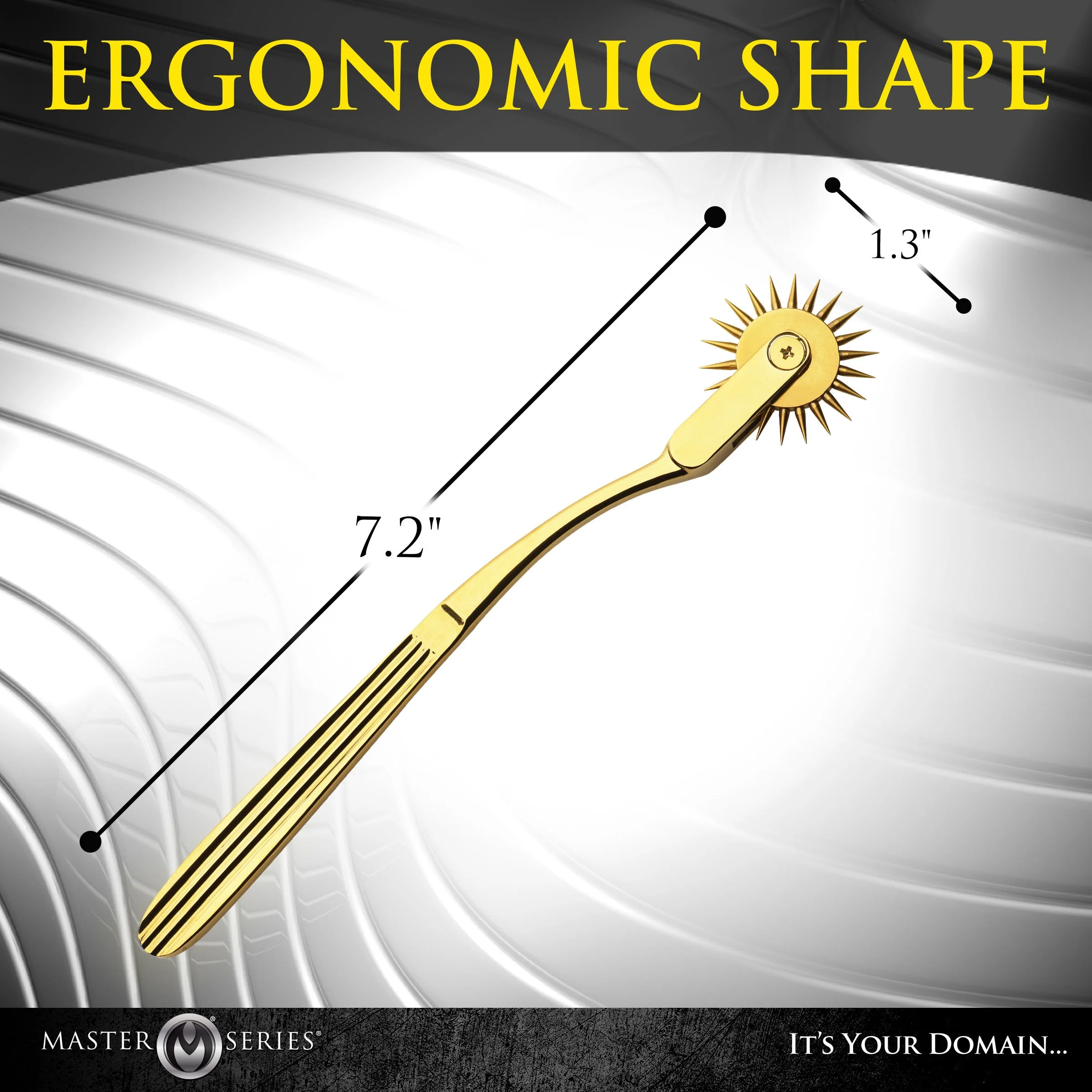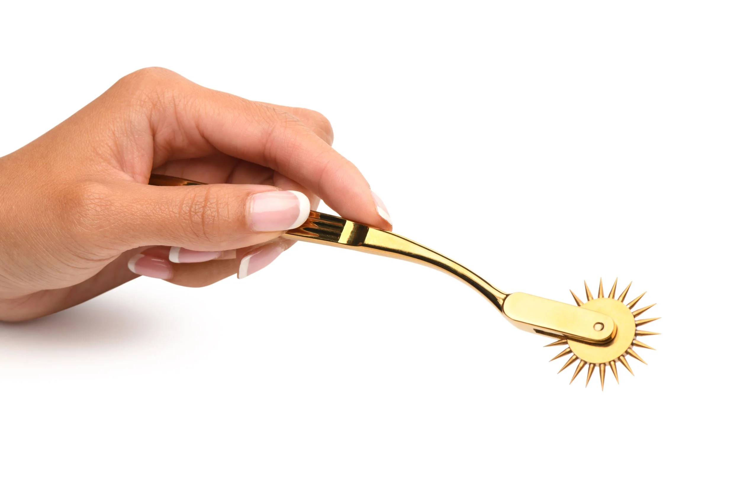 Ontdek een unieke ervaring met het XR Brands - Wartenberg Wiel - Goud, een verfijnd en innovatief intiem product dat ontworpen is voor koppels en individuele avonturiers die hun zintuigen willen prikkelen. Dit elegante gouden wiel, voorzien van fijne naalden, is zorgvuldig vervaardigd om voorzichtig over de huid te rollen en zo een subtiel tintelend effect te geven dat de sensatie verhoogt zonder ongemak te veroorzaken. Met een lengte van 183 mm en een maximale diameter van 33 mm is dit pinwheel gemakkelijk hanteerbaar en ideaal voor zowel beginners als ervaren gebruikers in sensatiespelletjes.