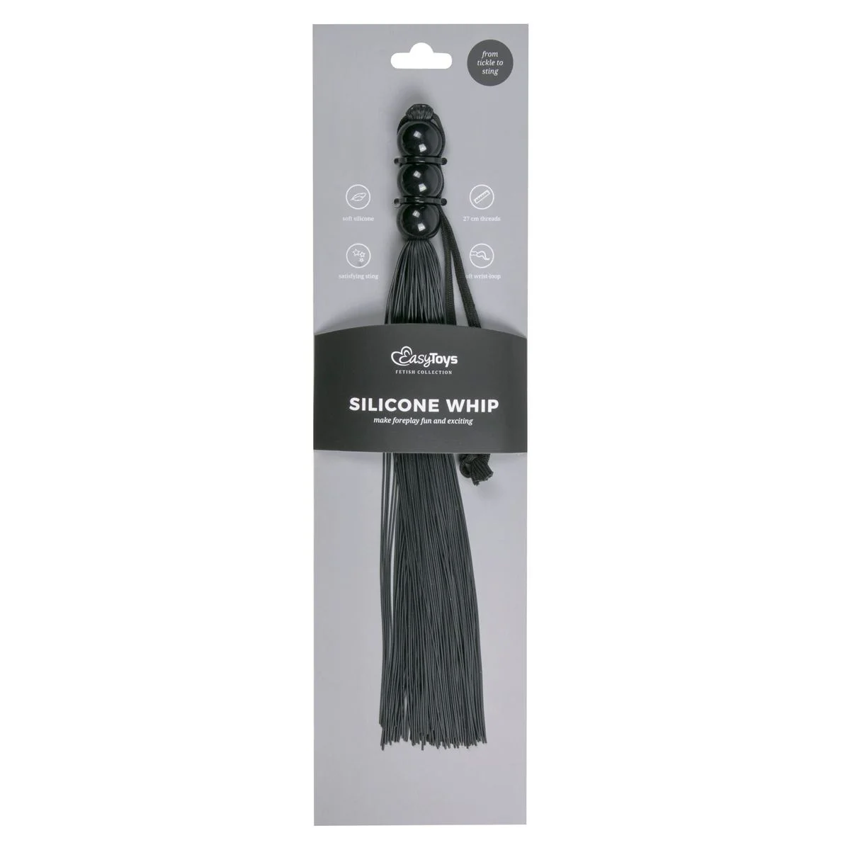 De lange, zwarte siliconen strengen geven een fluisterzachte aanraking die je partner zachtjes kan strelen, of met meer kracht de huid prikkelen voor een spannende kick. Dankzij de drie zwarte kralen heeft de zweep een elegante en smaakvolle uitstraling die past bij elke setting. De praktische lus aan het handvat zorgt ervoor dat de zweep stevig in de hand blijft, ook tijdens de intensste sessies. Zo houd je volledige controle en kun je met vertrouwen de grenzen verkennen.