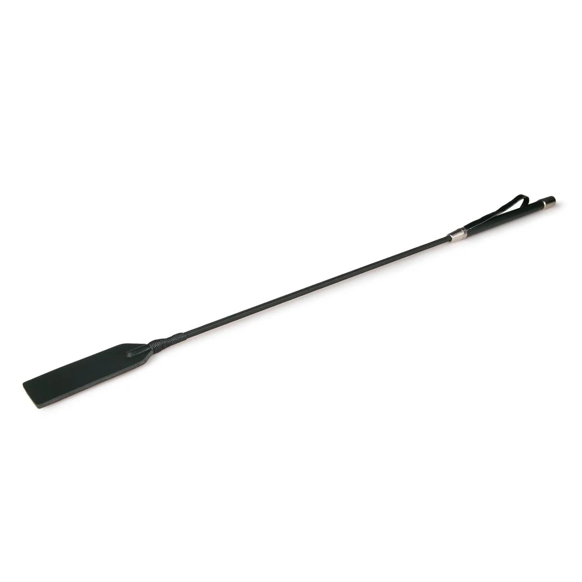 Het handvat van deze zwarte zweep is voorzien van metalen dopjes aan beide uiteinden, wat niet alleen bijdraagt aan de strakke en stijlvolle uitstraling, maar ook het gebruiksgemak verhoogt. Dankzij het comfortabele ontwerp ligt het handvat prettig in de hand, waardoor je moeiteloos de gewenste kracht en ritme kunt aanhouden. De leren lus aan het uiteinde zorgt niet alleen voor extra grip, maar verhoogt ook de veiligheid tijdens gebruik, zodat jij en je partner kunnen genieten van een zorgeloze en spannende ervaring.